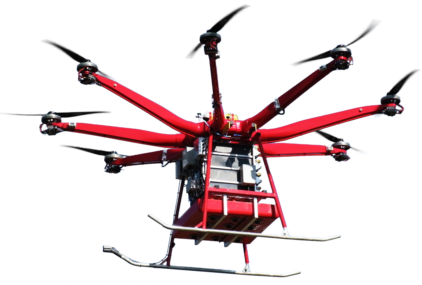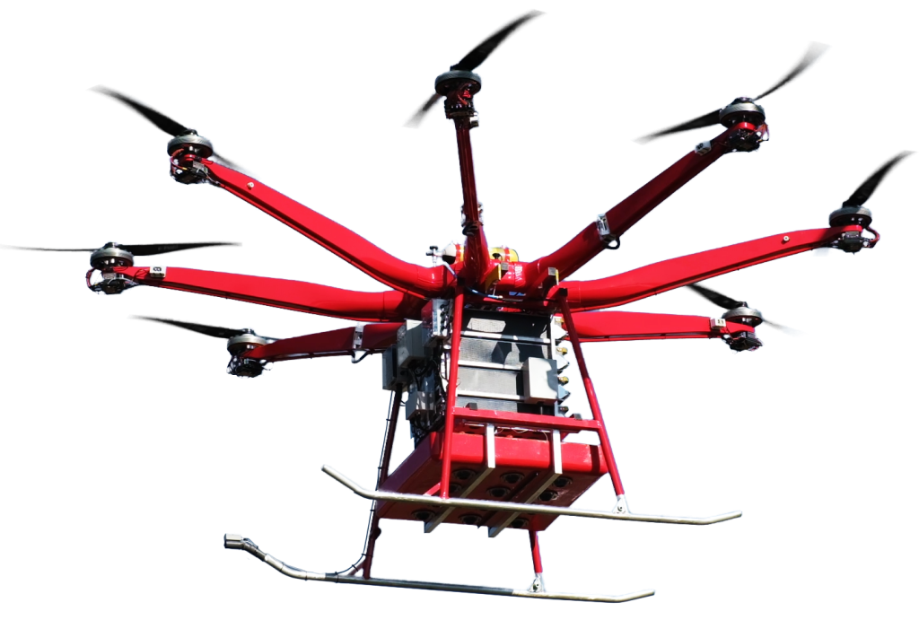 Whisper Foam assure des interventions contre l’incendie sur des immeubles de grande et très grande hauteur, sur des foyers inatteignables par les moyens au sol. Ce drone projette de la mousse ininflammable propulsée par de l’eau sous pression contenue dans un réservoir de 140 litres. Ce mélange assure une efficacité contre le feu équivalant à 1 000 litres d’eau.
